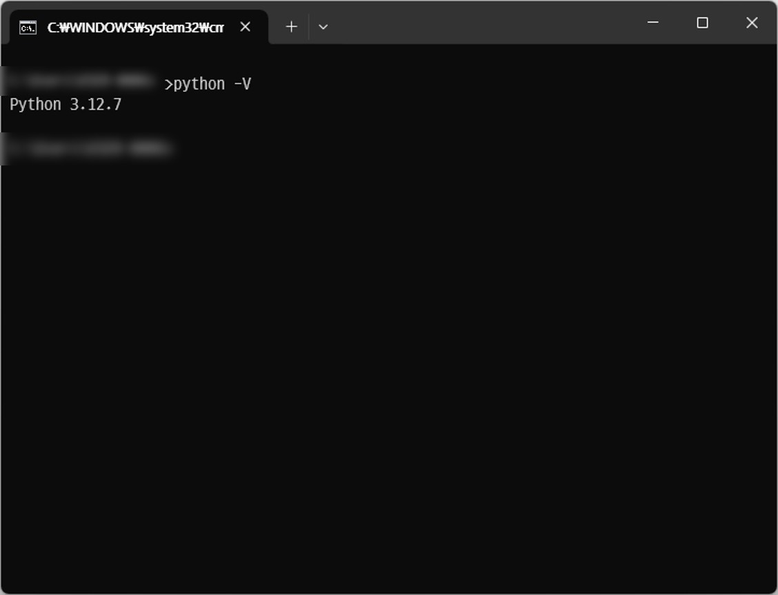다시 명령 프롬프트에서 python -V를 입력해보면 설치한 Python 버전이 뜨는 것을 확인할 수 있습니다.