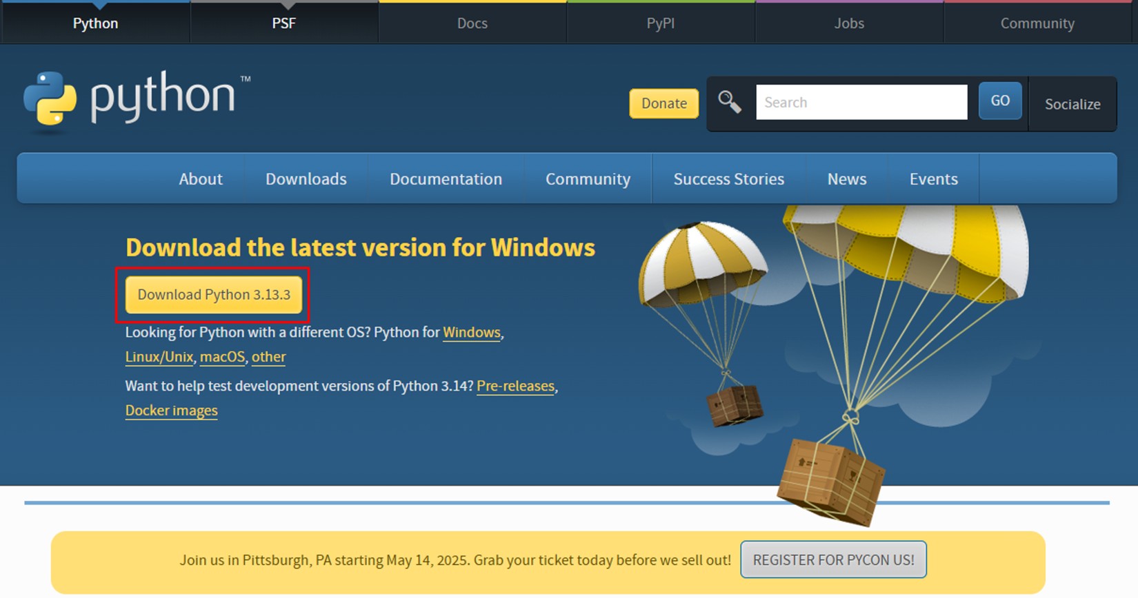 Python을 설치해야한다고 가정하고, Python 공식 웹사이트의 다운로드 페이지에서 Python 설치에 필요한 파일을 다운로드합니다.